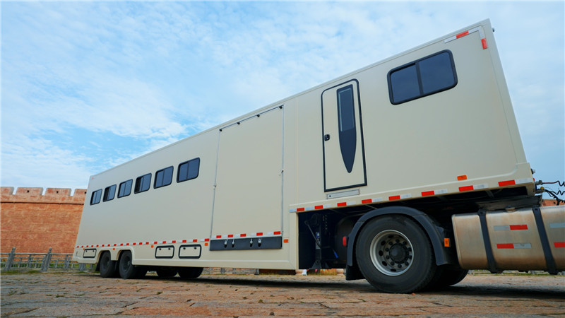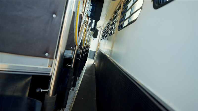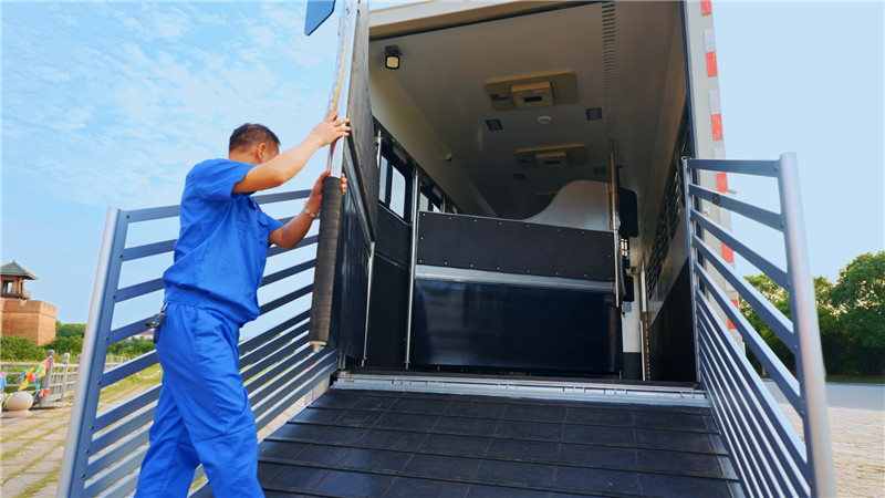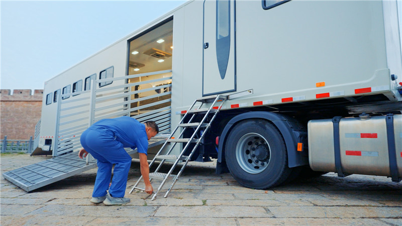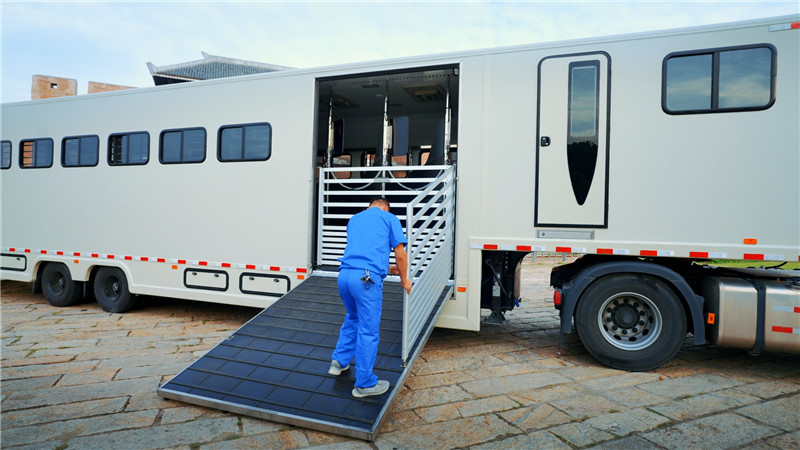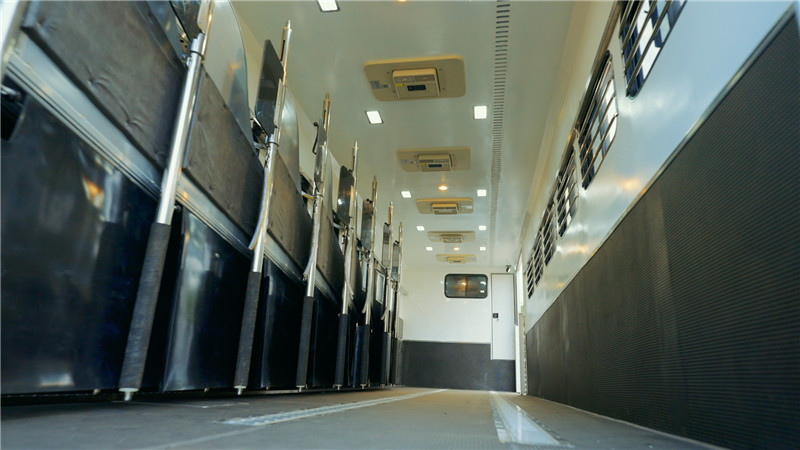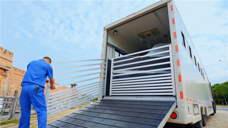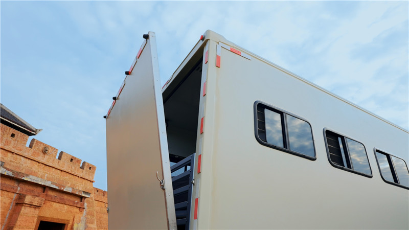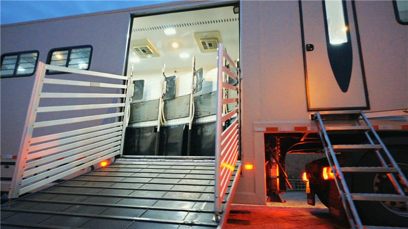 液壓門系統(tǒng) 液壓后翻門,帶緊急手動(dòng)操作裝置,箱體尾部有液壓升降踏板,方便馬匹上下(內(nèi)部鋁合金),軍用品質(zhì)液壓系統(tǒng)(海格曼)
