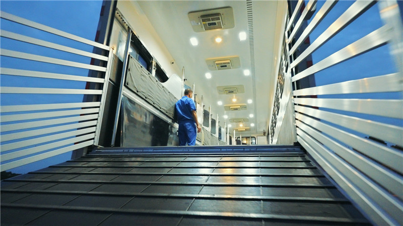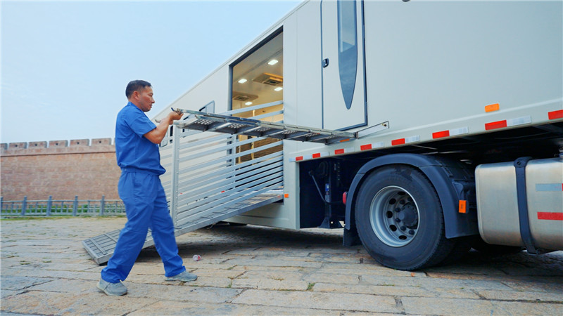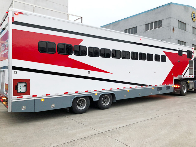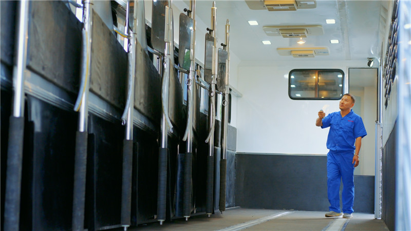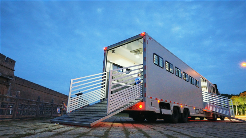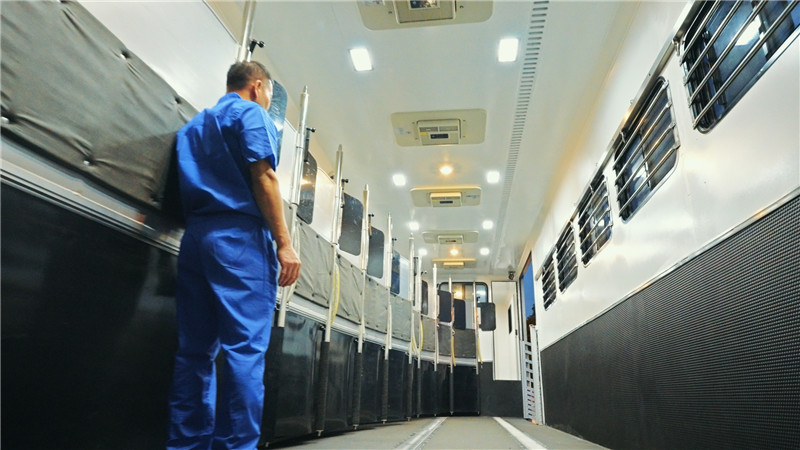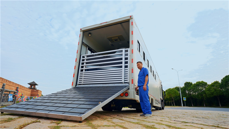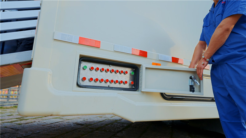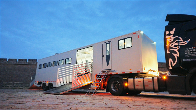 液壓門系統(tǒng) 液壓后翻門,帶緊急手動(dòng)操作裝置,箱體尾部有液壓升降踏板,方便馬匹上下(內(nèi)部鋁合金),軍用品質(zhì)液壓系統(tǒng)(海格曼)